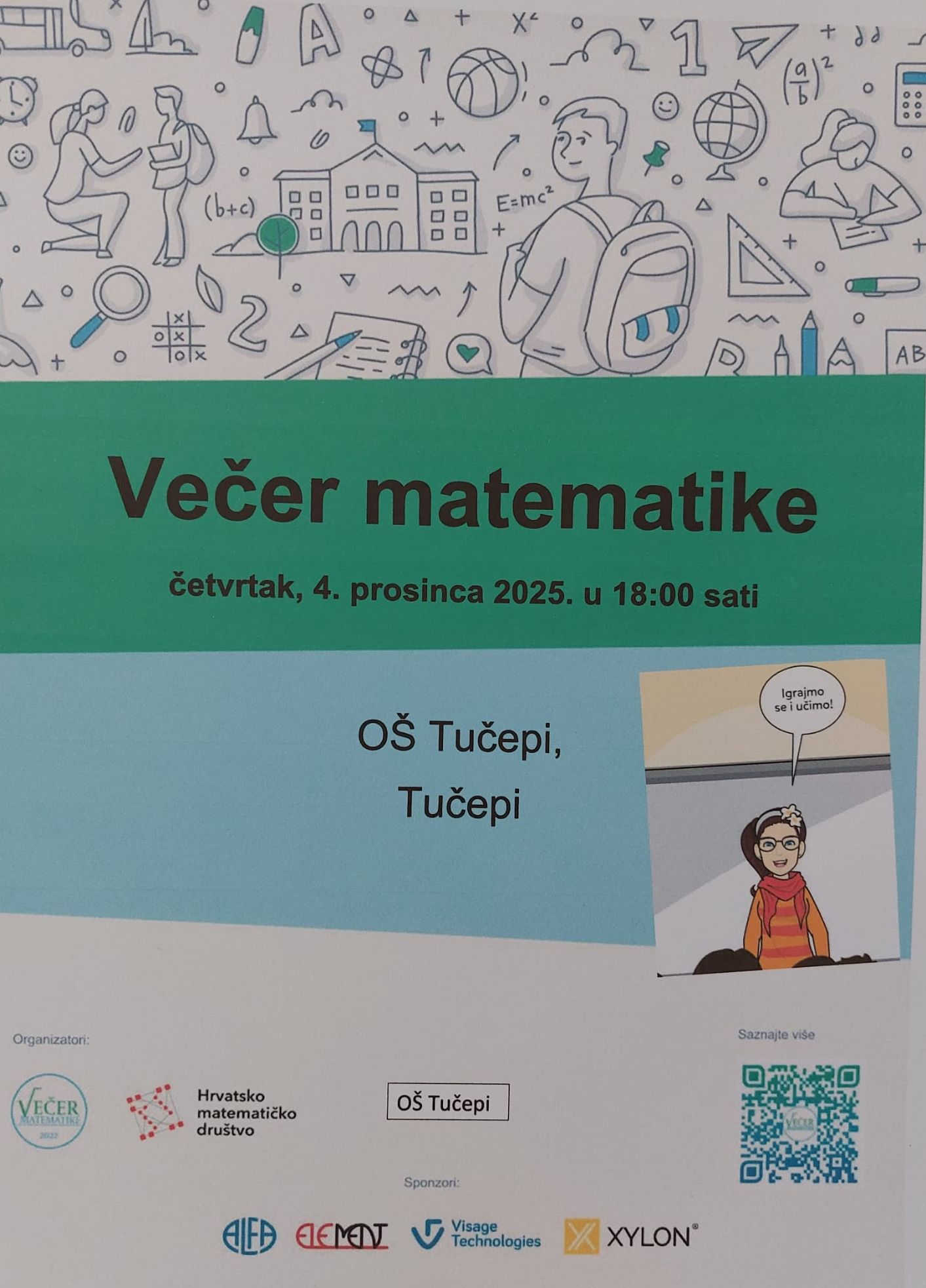 Večer matematike održat će se 5. prosinca 2024. u 18:00. Zabavimo se uz nestandardne matematičke zadatke i zajedno otkrijmo svu ljepotu matematike.
