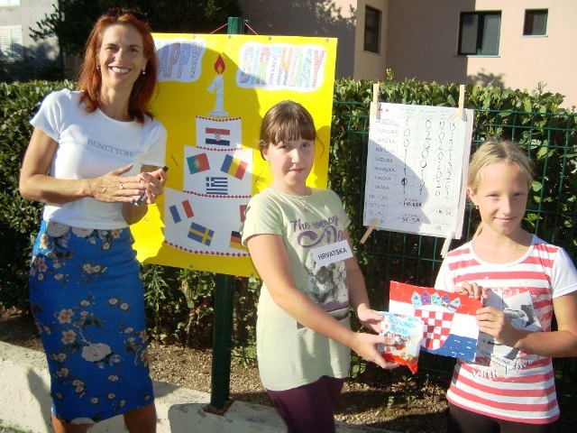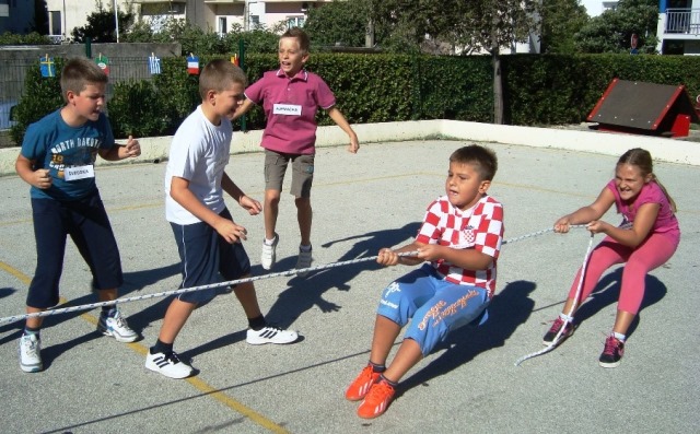 Učenici su predstavljali jednu od 8 partnerskih zemalja, marljivo su sakupljali bodove ubacujući loptu u koš, gađajući loptom u okvir gola, te najuzbudljivije: potezanjem konopa! Nakon održanih kvalifikacijskih borbi i finalnih natjecanja, pobjednici su: Hrvatska (u 4.r.), Grčka (u 3.r.), Švedska (u 2.r.); kao i svi sudionici koji su se, vjerujemo, odlično zabavili i zasladili uz zaslužene čokoladice! Sigurni smo da će naši učenici uživati i u svim ostalim projektnim aktivnostima planiranim za ovu šk.god.!