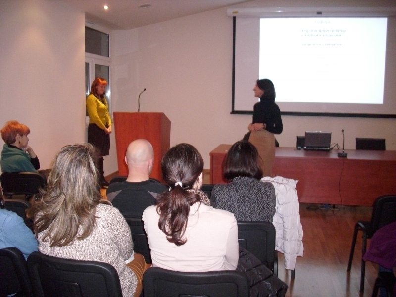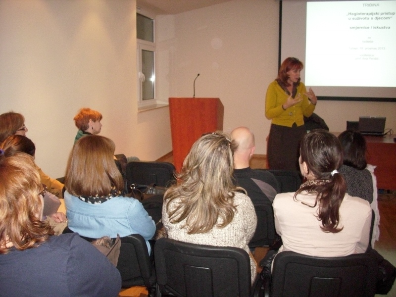 Nakon jednog seminara za sve učitelje OŠ Tučepi u kojem smo se upoznali s izvrsnošću projekta koji provodi prof. Ana Perišić, u utorak, 10. prosinca 2013. godine za roditelje učenika od 5. do 8. razreda i njihove učitelje organizirano je predavanje „Hagioterapijski pristup u suživotu sa djecom“.