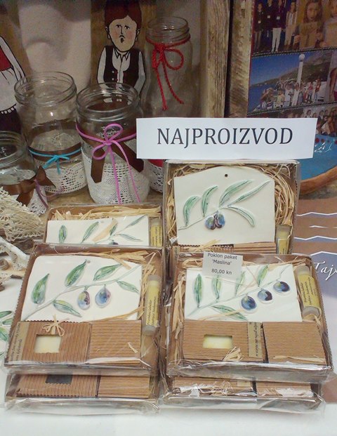 Najponosniji smo bili na naš glavni proizvod – poklon paket „Maslina“ s keramičkim reljefom i prikazom maslinove grančice te prirodnom kozmetikom s domaćim maslinovim uljem – sapunom, melemom i balzamom za usne.