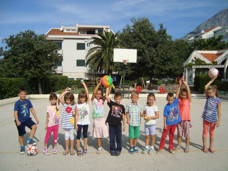 Tata našeg Doriana, Ivica Šarić, poklonio nam je punu vreću lopti: velikih, malih, šarenih jednobojnih, a najviše smo se obradovali pravoj nogometnoj lopti!!!