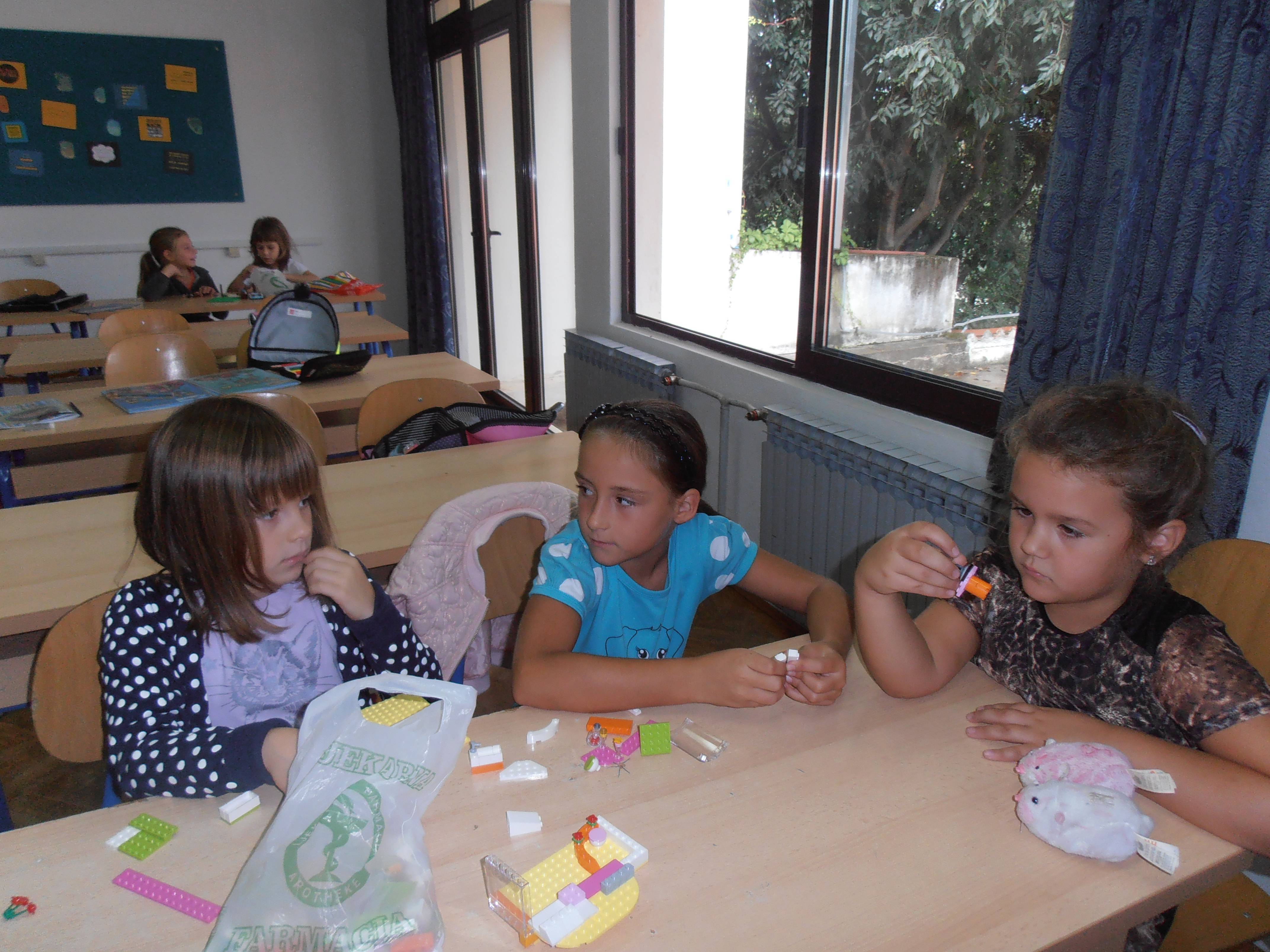 Igrali smo se, pravili dvorce, hotele,slagali riječi, a na kraju smo sastavljali slikovne rečenice i lijepili ih na papire u boji.