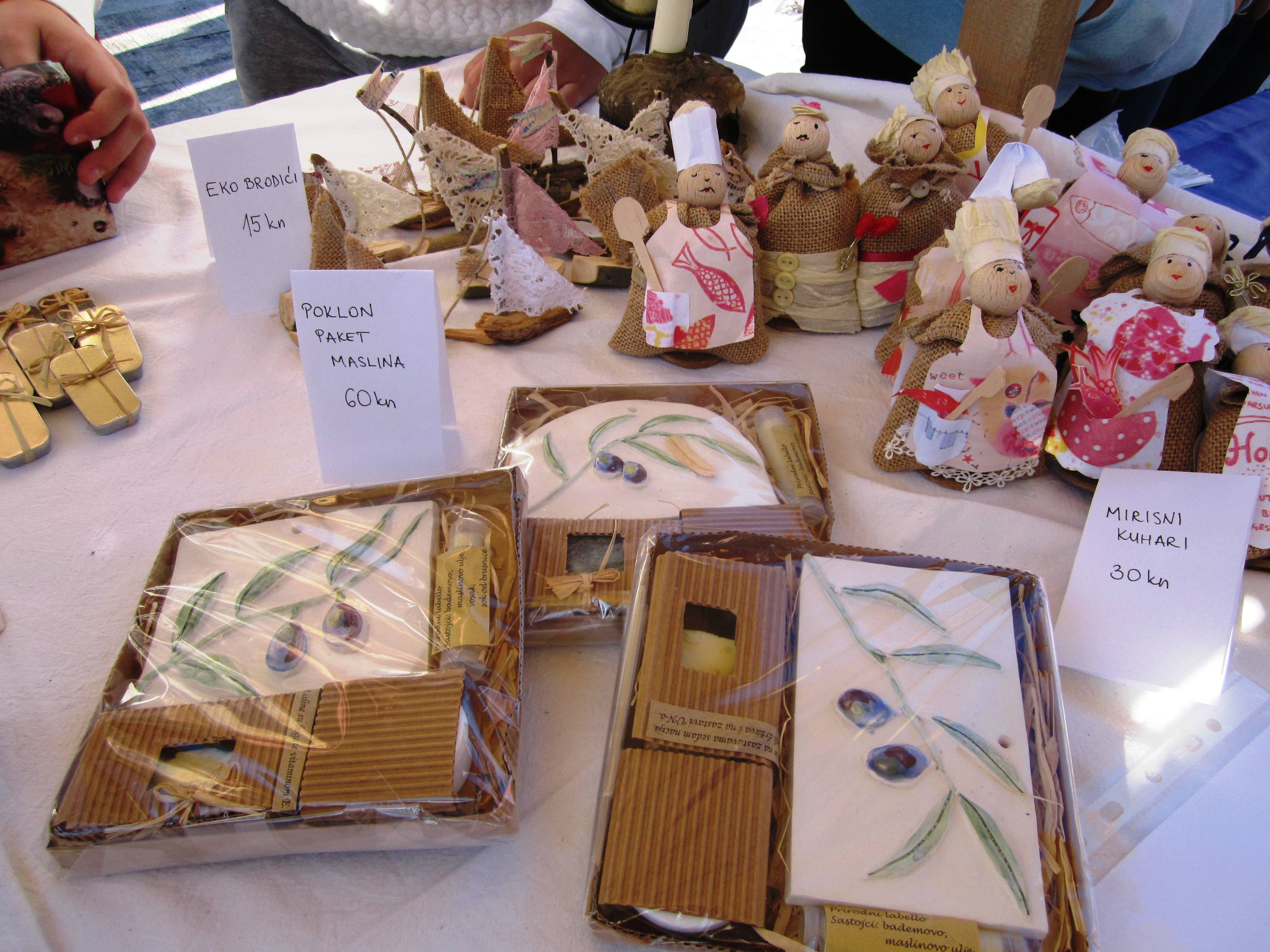 Svi nazočni pozvani su na razgledavanje i kupnju izloženih radova jer je dio novca, kao i svake godine, namijenjen u humanitarnu svrhu. I ovom izložbom učenici, koji su svi članovi Učeničke zadruge Škrinjica, pokazali su kako mašta i priroda mogu napraviti prava mala čuda. Uz pomoć svojih učitelja prvaši su izložili maštovite gljive, drugaši kutijice ukrašene listovima, trećaši ukrasne staklenke, a četvrtaši staklenke ukrašene konopom. Učenici viših razreda, koji su članovi Likovne i Eko sekcije, a koje vode učiteljice Ivana i Rozana, izložili su sapune, balzame za usne, keramičke predmete, eko brodiće, meleme, mirisne kuhare, platnene torbe te poklon pakete – Maslina. Zahvaljujući vrijednim roditeljima, bilo je tu i kolača koji su se prodavali, a kojima se moglo počastiti i dodatno uživati u ovom lijepom jesenskom danu.