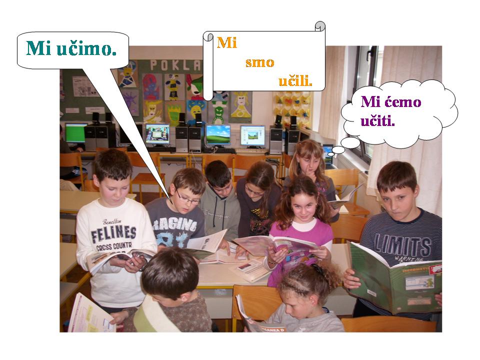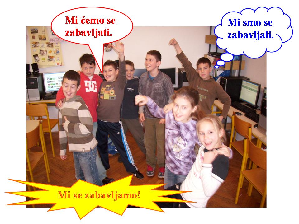 Učiteljica informatike - Renata Josipović, pri tome ih je fotografirala i na slikovit način prezentirala ono što su naučili (istu rečenicu izreći u tri vremena).......