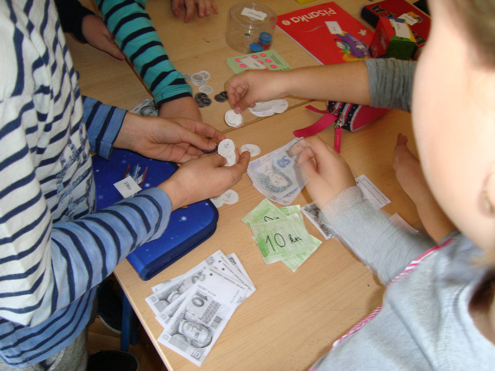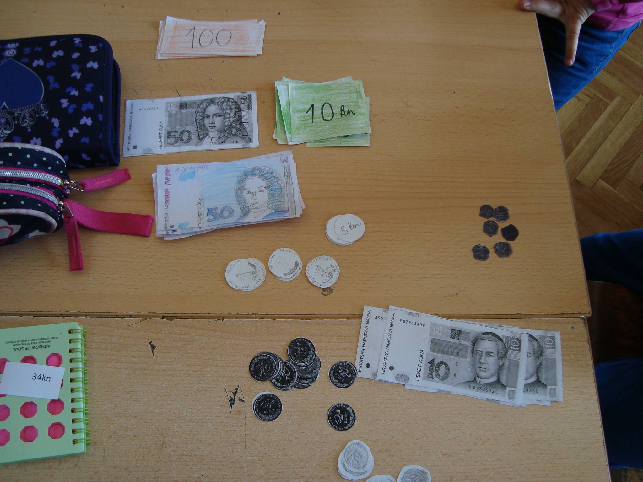Dogovorene su i istaknute cijene za odabrane predmete. Učenici su sami napravili novčanice i kovanice o kojima su učili, te se podijelili na kupce i prodavače.