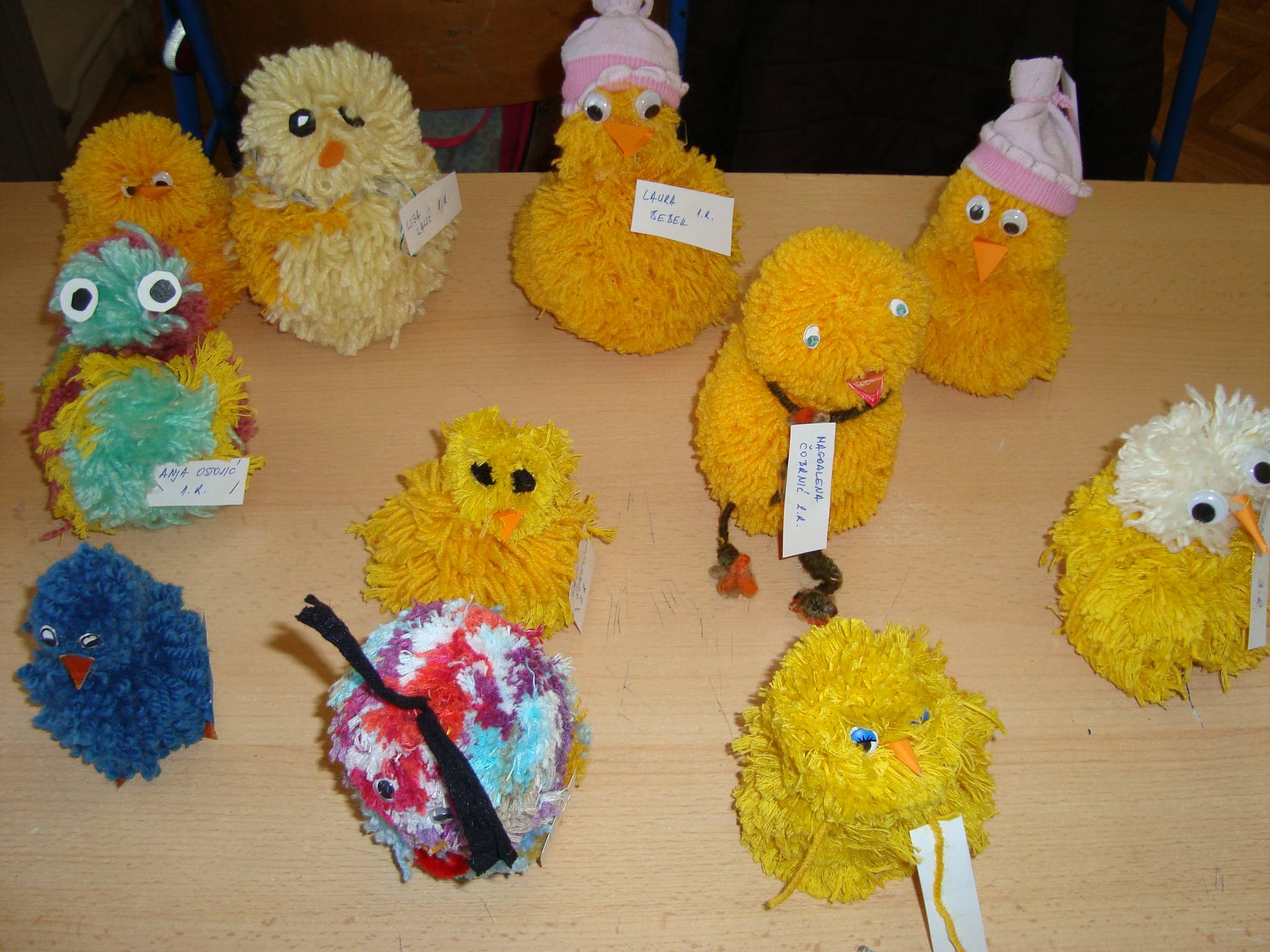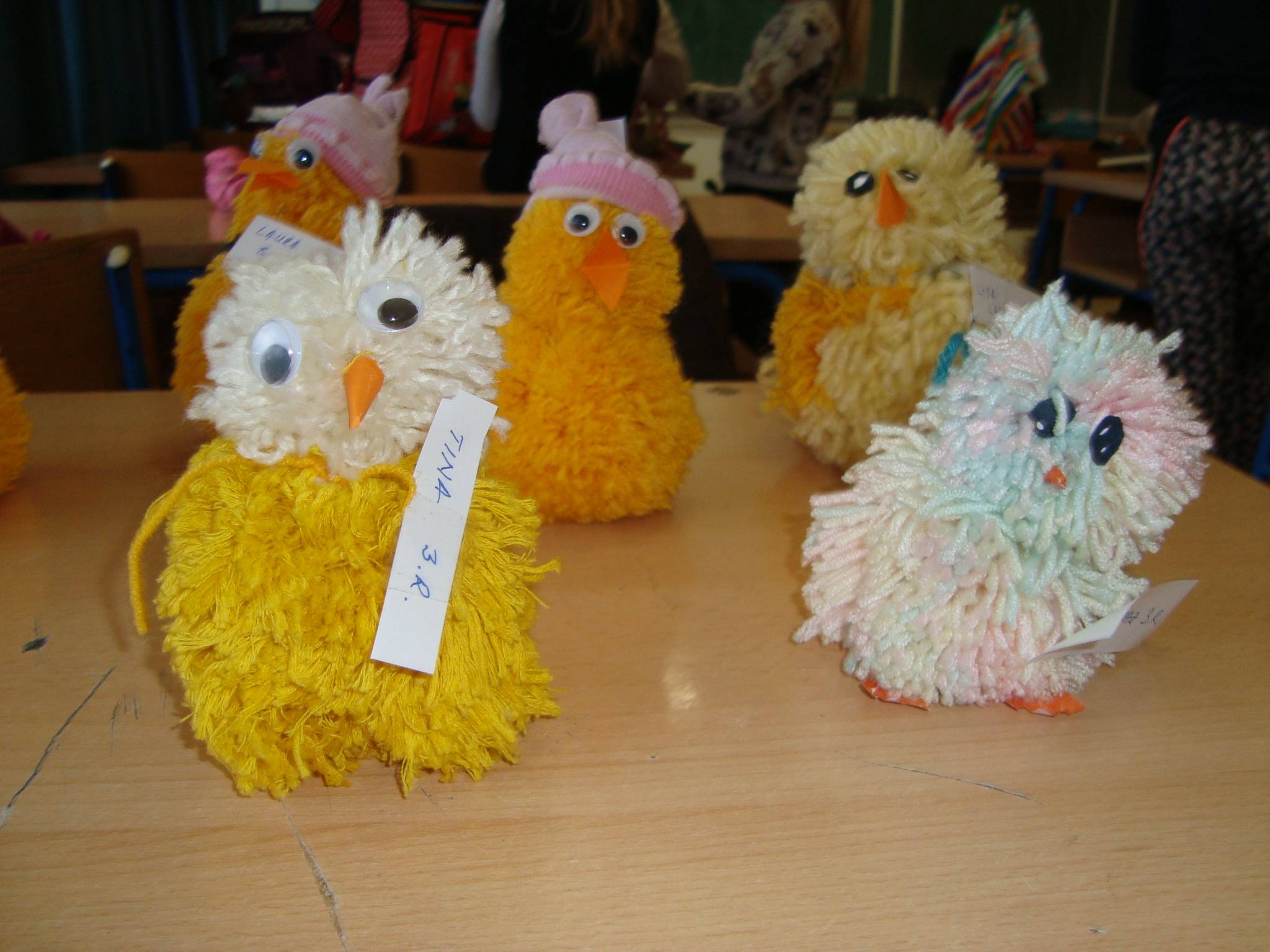Vrijedne ruke naših učenica za Uskrsni sajam pripremile su piliće od vune i ukrasne posude koje su omotale pletenicama od tkanine.