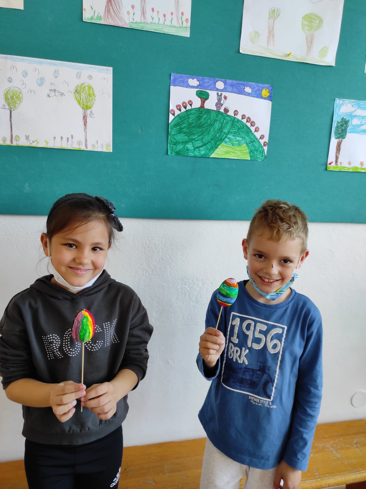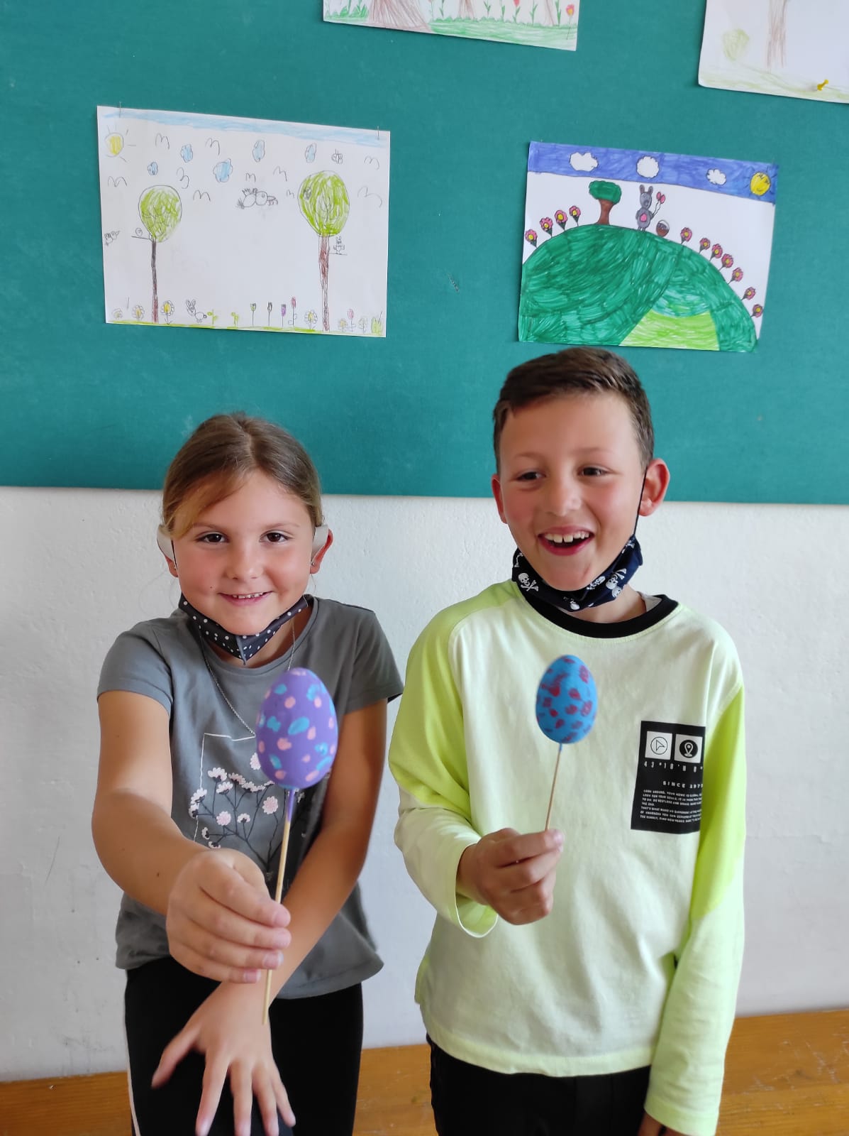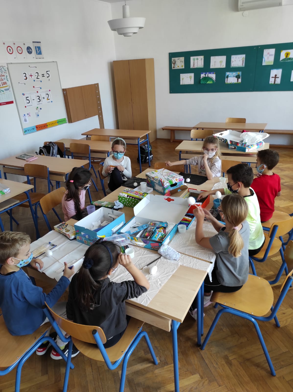 Nakon izolacije većina prvaša opet je u školskim klupama. Danas su izrađivali šarene pisanice...