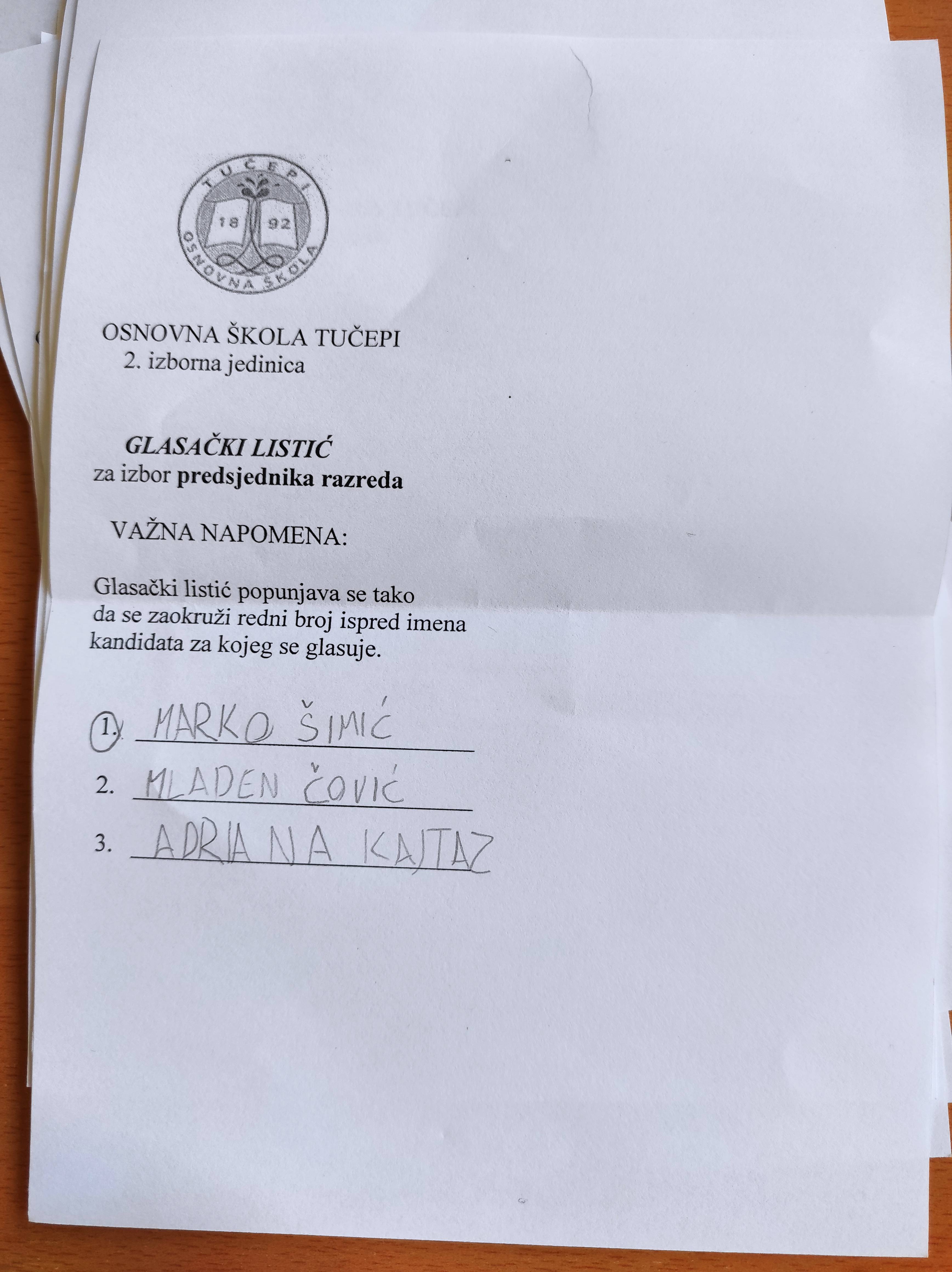 Drugaši su tajnim glasovanjem izabrali predsjednika razreda i njegovog zamjenika.