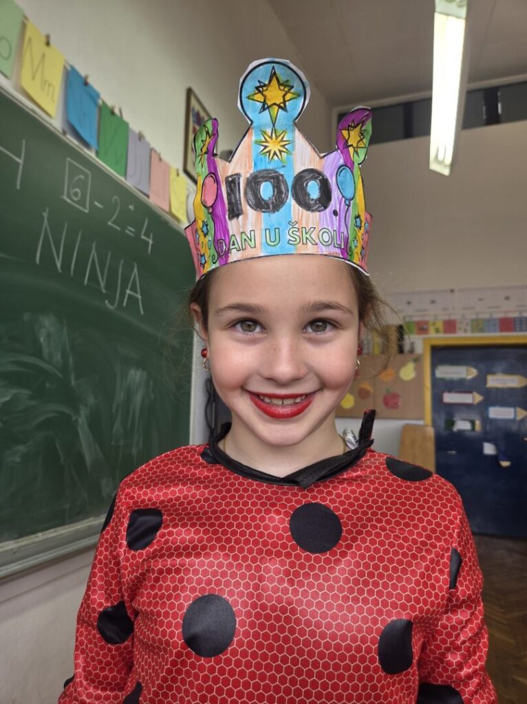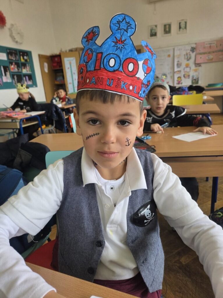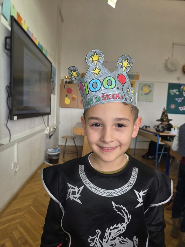 Prvaši su s veseljem obilježili 100.dan škole. Dan je protekao u veselom ozračju i u duhu maškara, što je dodatno razveselilo učenike. Učenici su izradili i prigodne krune, koje su s ponosom nosili tijekom aktivnosti. Vrijedno su rješavali čak 100 matematičkih zadataka te pritom pokazali svoje znanje, upornost i marljivost. Za kraj smo se počastili sladoledom, čime je ovaj poseban dan završio u veselju i zadovoljstvu svih učenika.