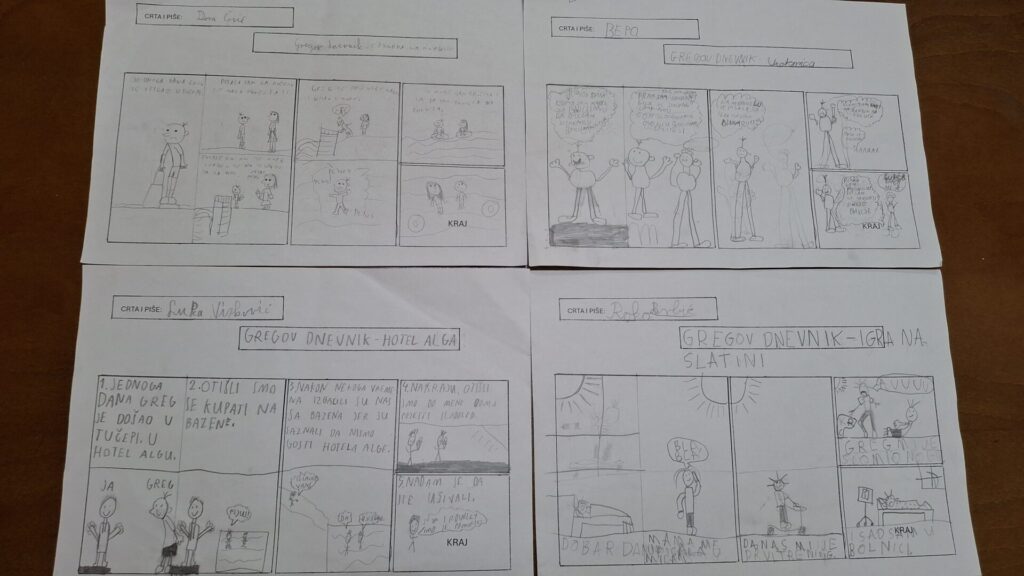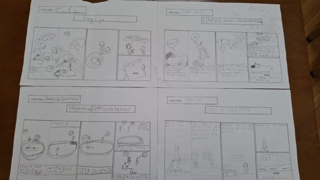 U 4. razredu učenici su se bavili strip-romanom Gregov dnevnik autora Jeffa Kinneyja. Greg je učenik koji vodi dnevnik o svojim dogodovštinama u školi i kod kuće, često na vrlo duhovit način.