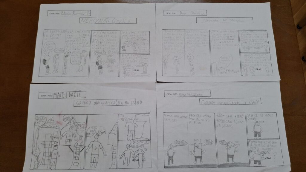 U nastojanju da potaknemo učenike na čitanje izvan okvira, razvijanje ljubavi prema čitanju i razumijevanju pročitanog teksta, težnji ka sposobnosti izražavanja mišljenja i osjećaja te poticanju kreativnosti i maštovitosti odlučili smo se za radionicu “Napravi svoj strip!” Cilj je bio upoznati učenike s osnovama stripa, potaknuti kreativno izražavanje kroz crtanje i pisanje te razvijati vještine pripovijedanja i vizualne komunikacije.