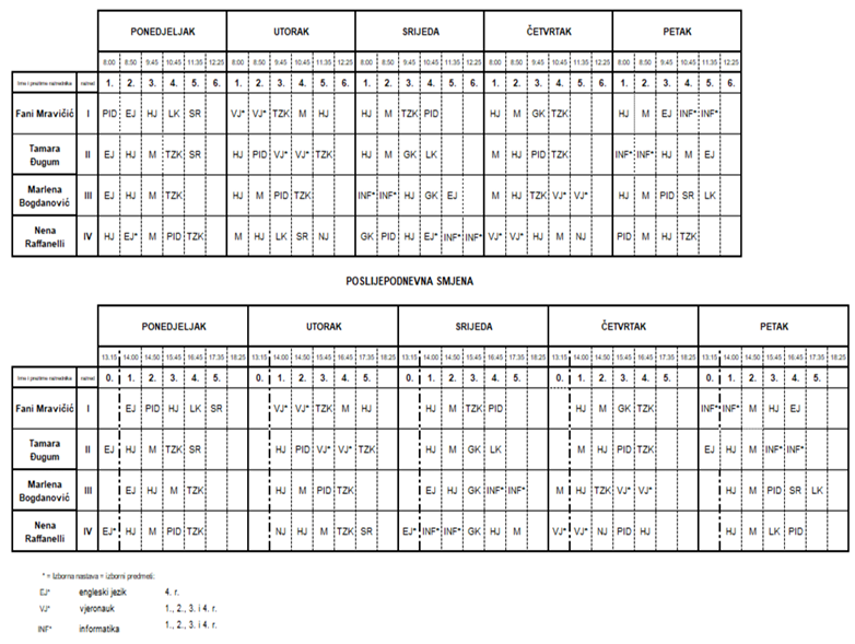 RASPORED SATI ZA RAZREDNU NASTAVU